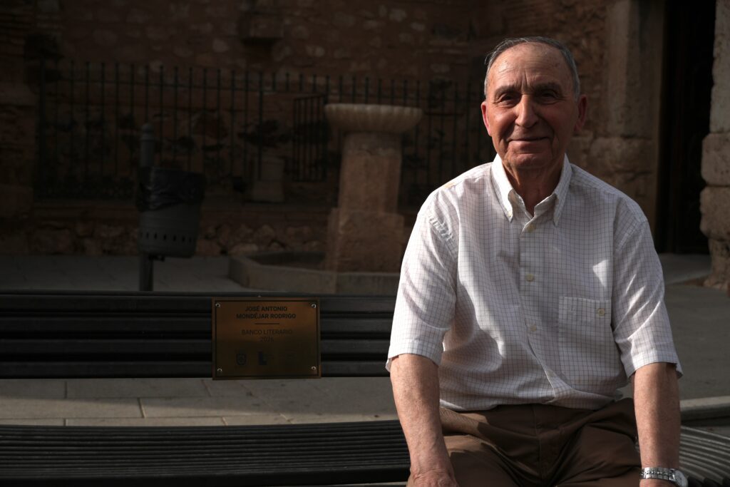 Finalmente, José Antonio Mondéjar, visiblemente emocionado, tomó la palabra. Recordó su infancia, su juventud marcada por el trabajo y el papel fundamental de su padre en su educación y amor por la lectura, así como su llegada al mundo literario gracias al Club de Lectura. Tuvo palabras de agradecimiento para Diana Rodrigo, sus compañeros del Club de Lectura y del Aula de Estudios, su familia y el Ayuntamiento, destacando la ilusión que le produce este reconocimiento: “Me emociona tener un Banco Literario en la plaza de mi pueblo”.